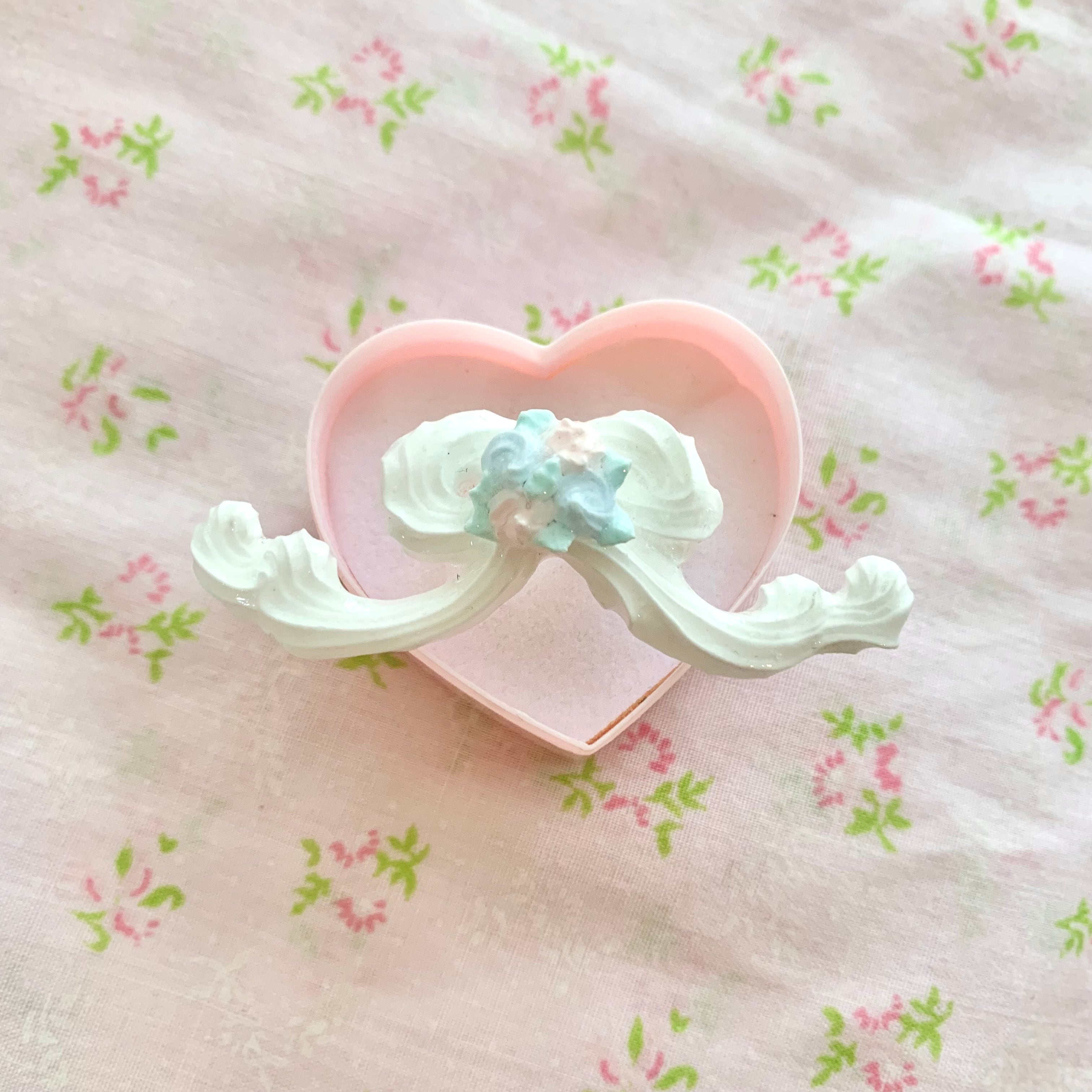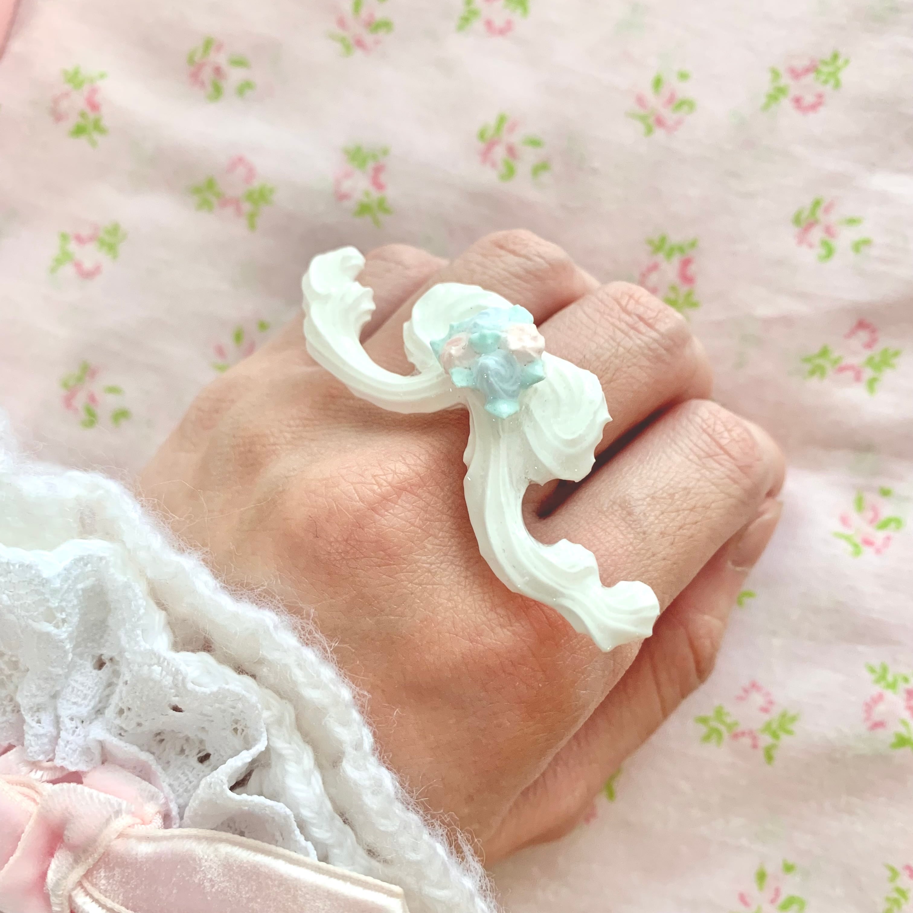 ホイップブーケリボン リング おおきめサイズのおリボンにローズブーケが乗ったリング リング11号 調節可能 粘土製レジン加工