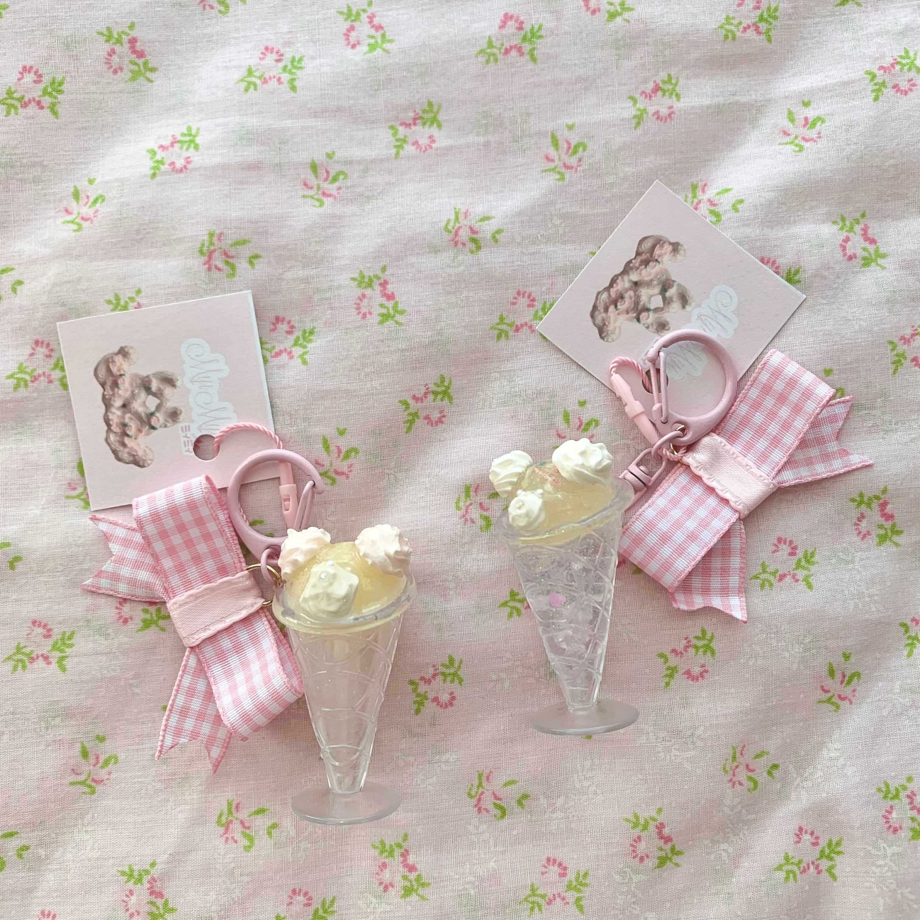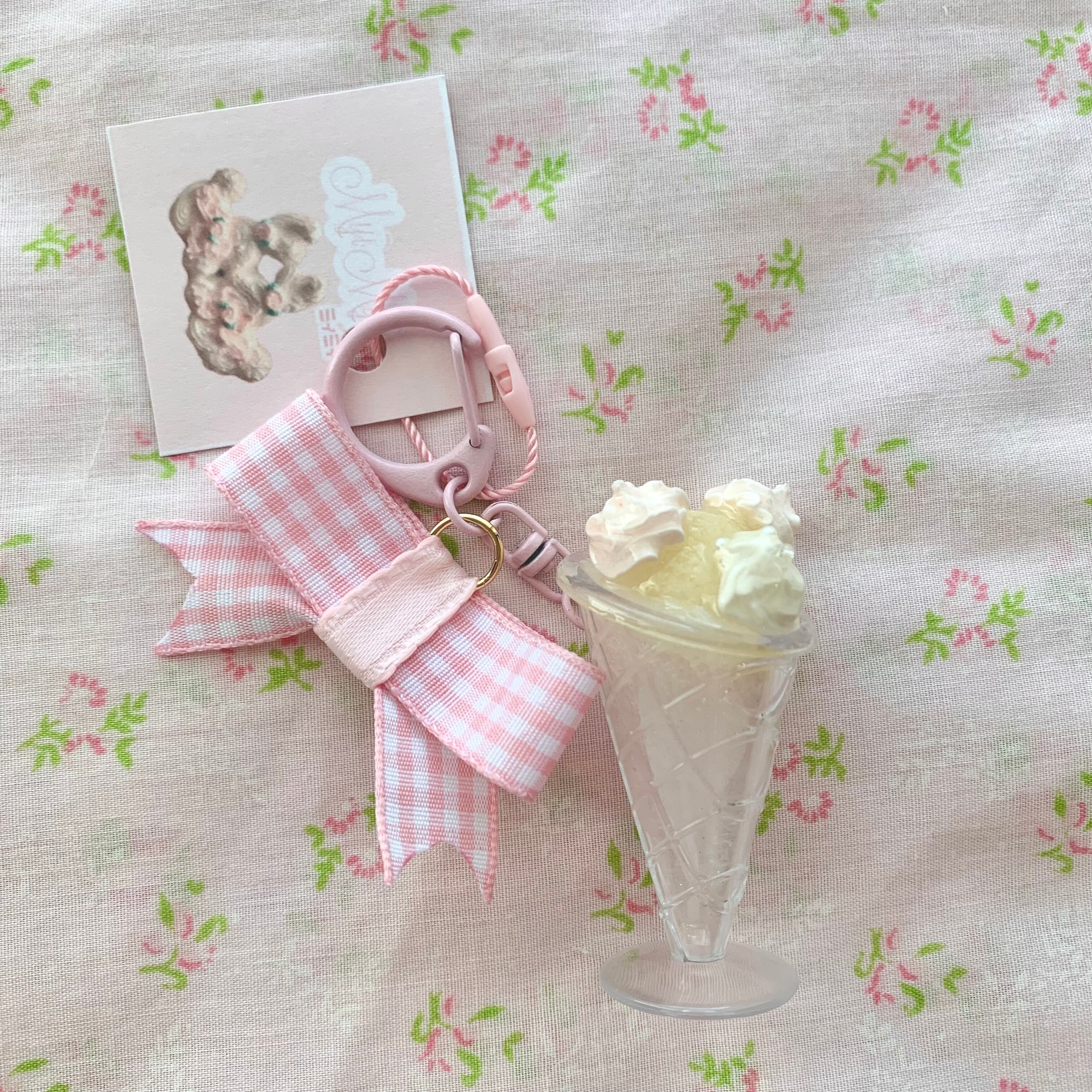 ギンガムのリボンと合わせた可愛いキーホルダー