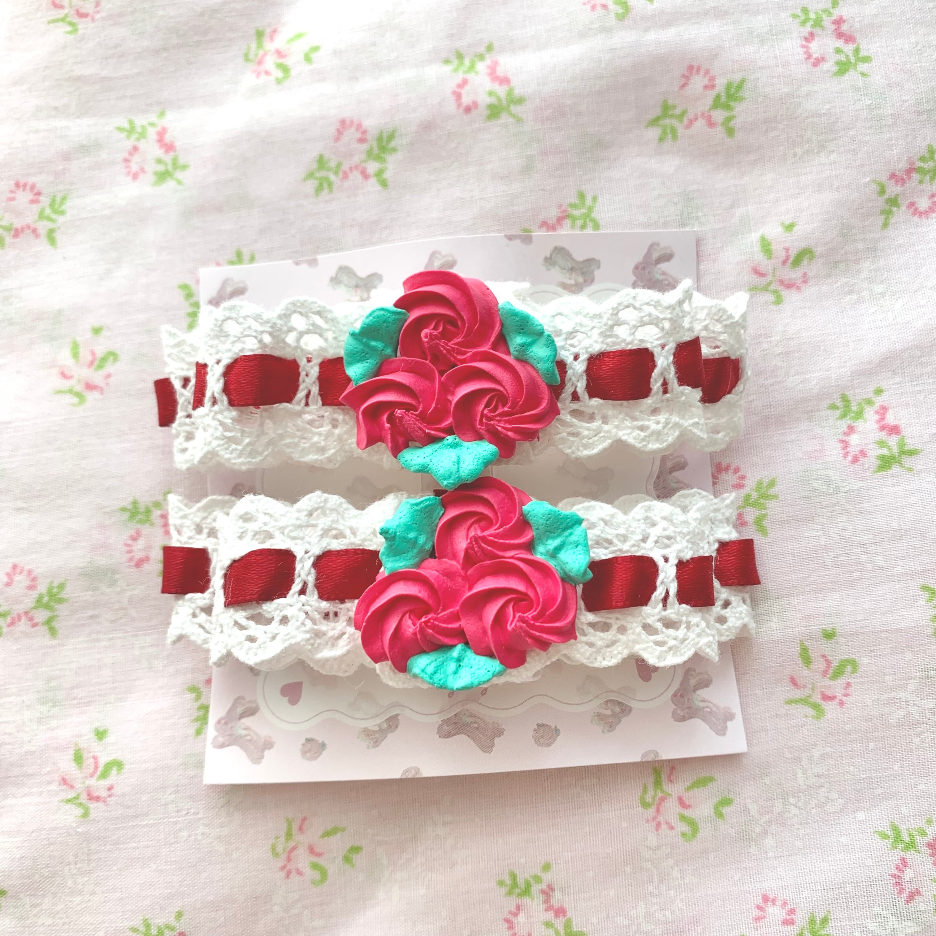 ホイップのローズが付いた可愛いヘアリボン