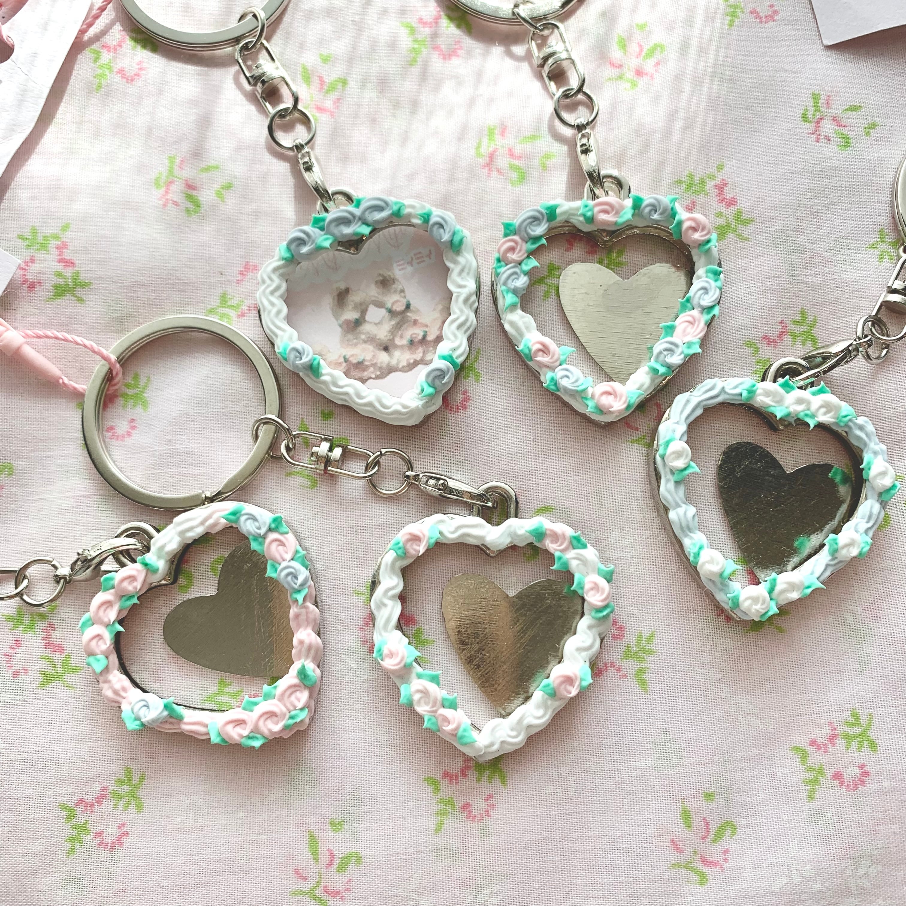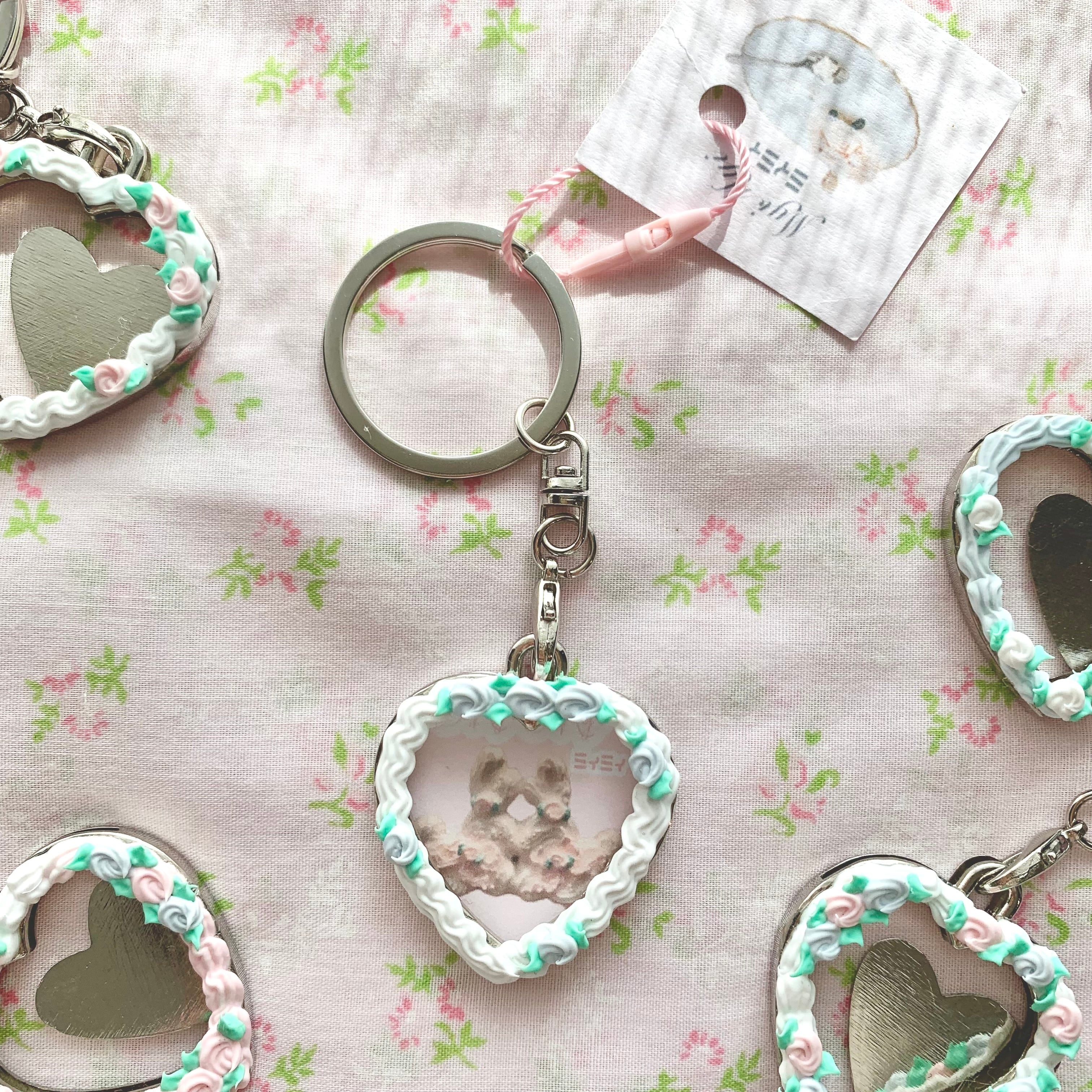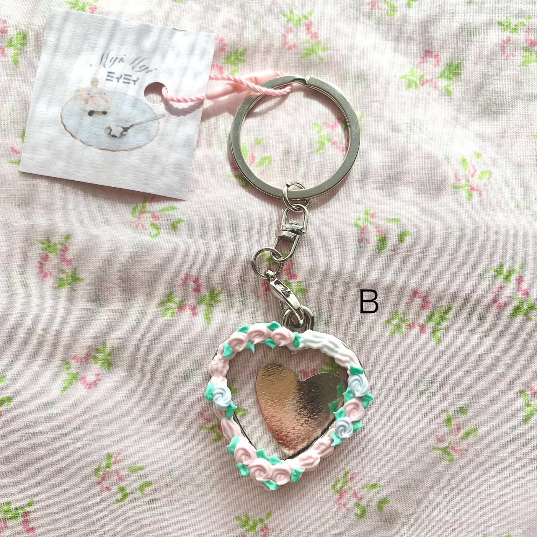 ホイップのふちどりが可愛いハート型のキーホルダー