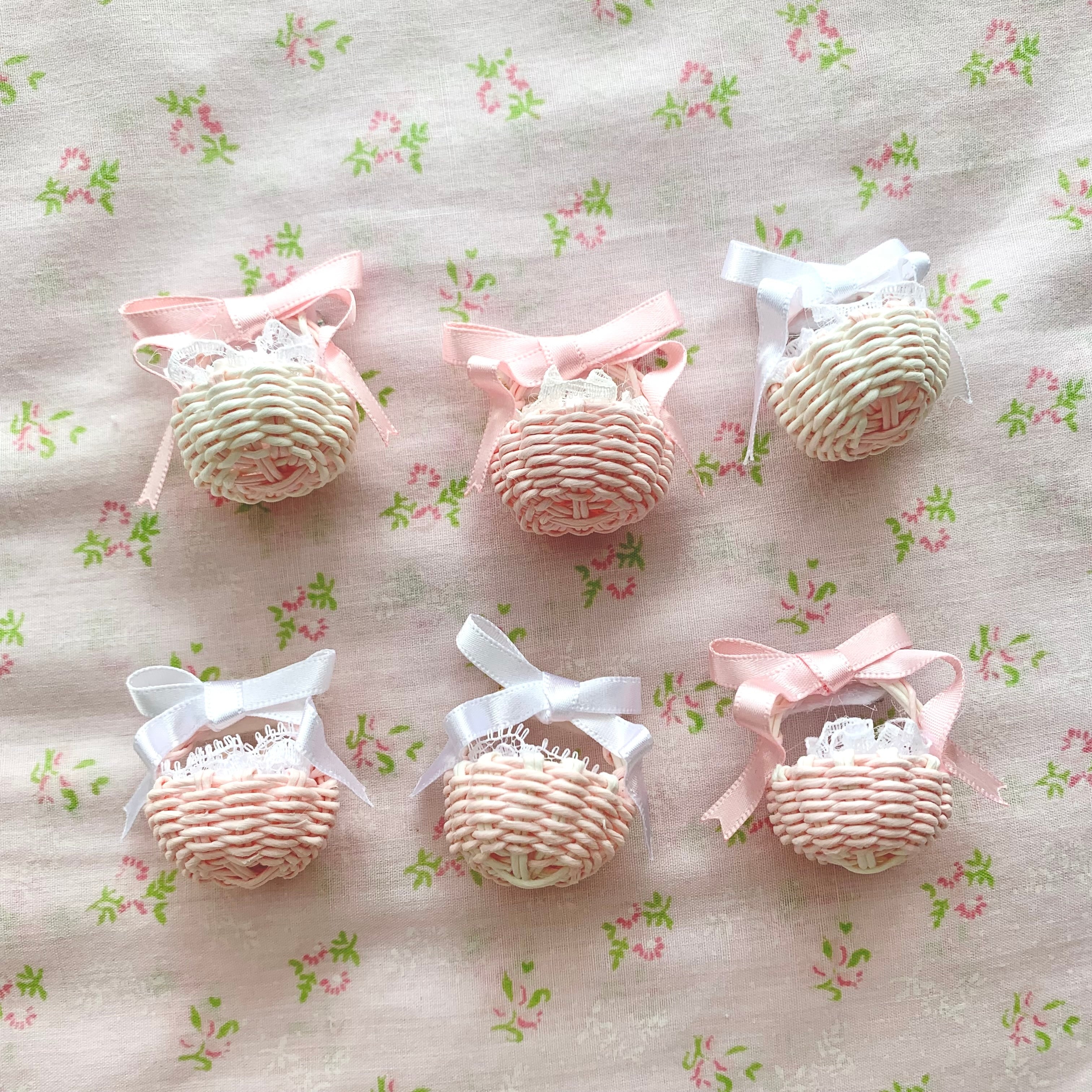 F・リボンホワイト カゴ全てピンク ぴんくのくま入り