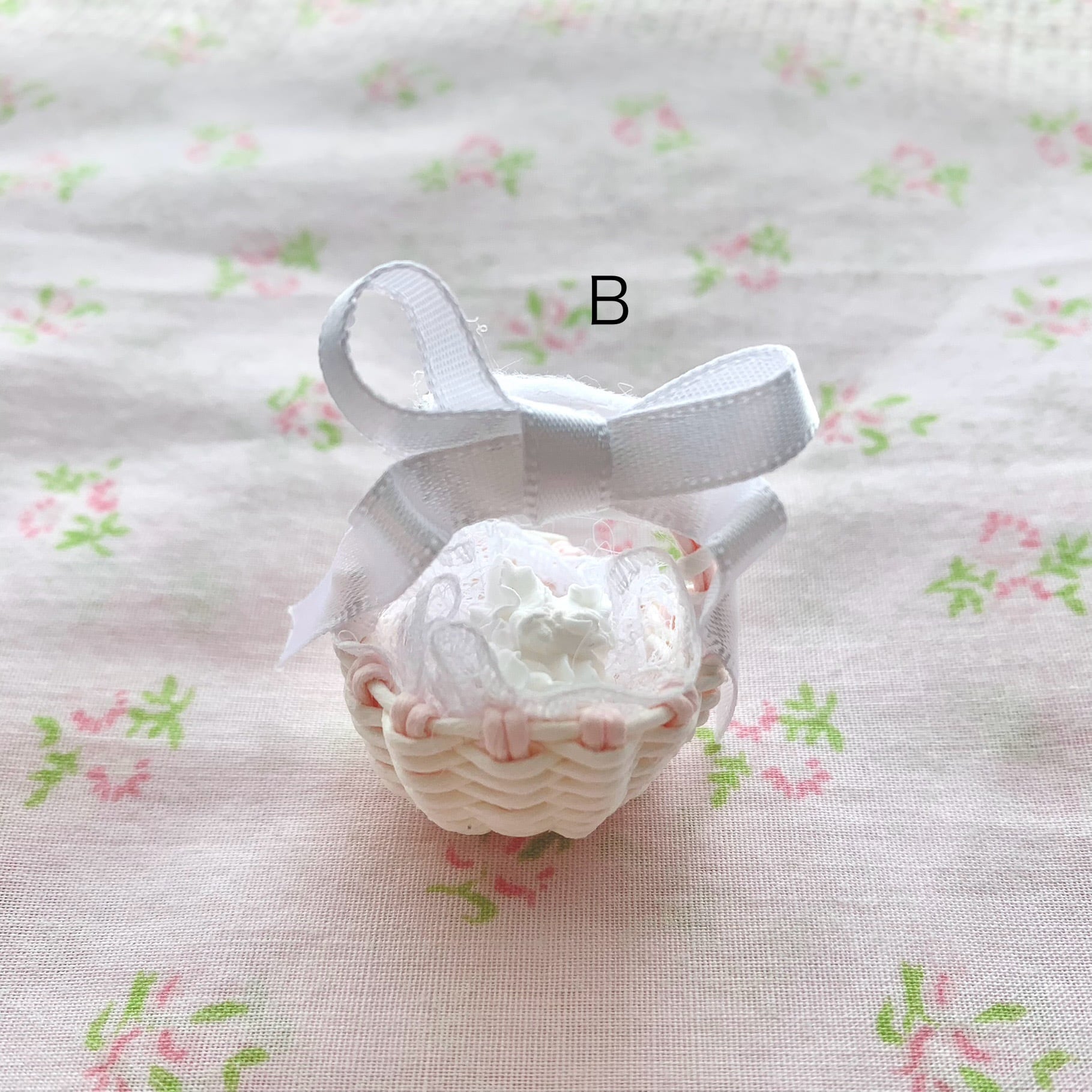 E・リボンホワイト カゴのふちホワイト カゴピンク ぴんくのくま入り