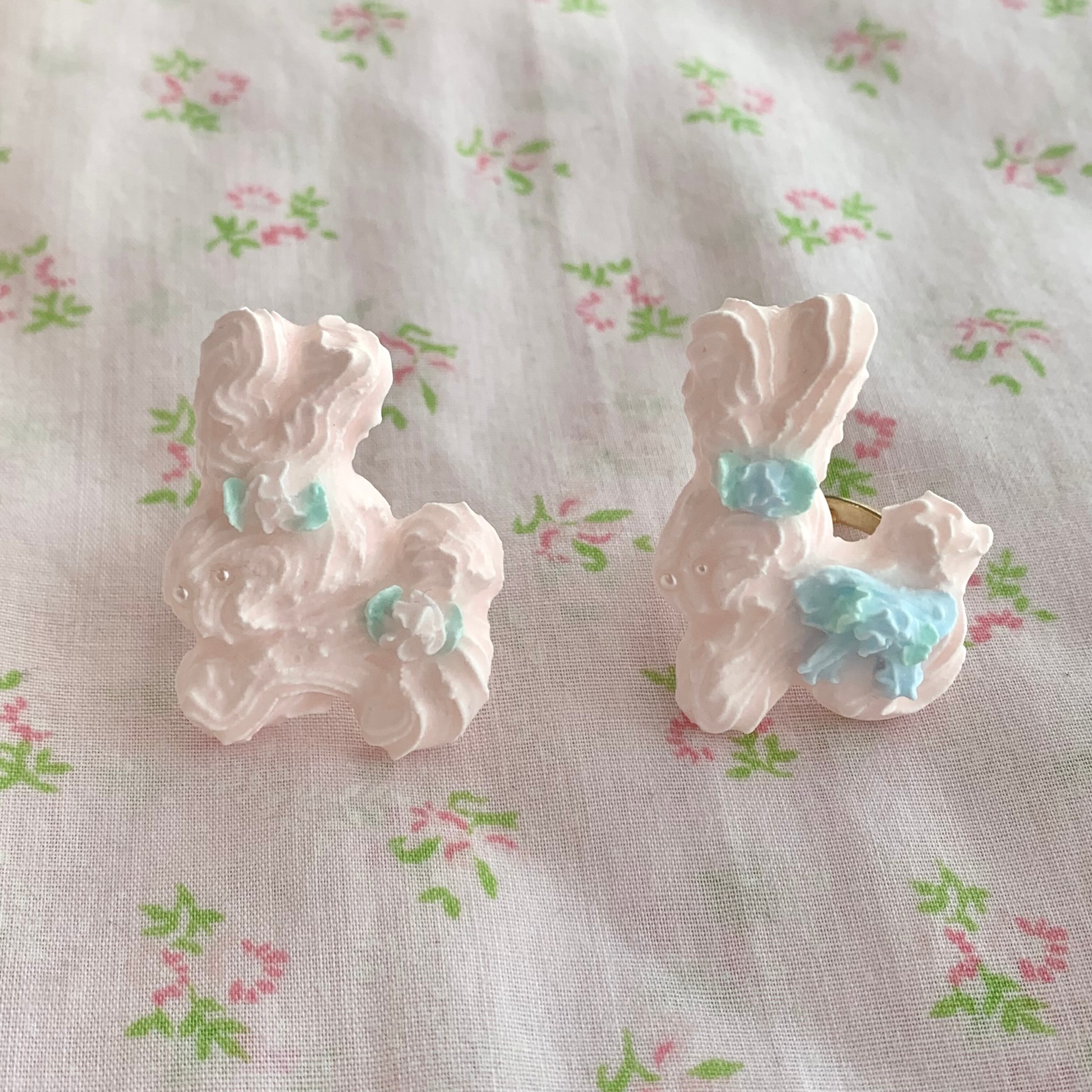 ホイップクリームで出来たぴんくのよこむきうさちゃんのかわいい指輪