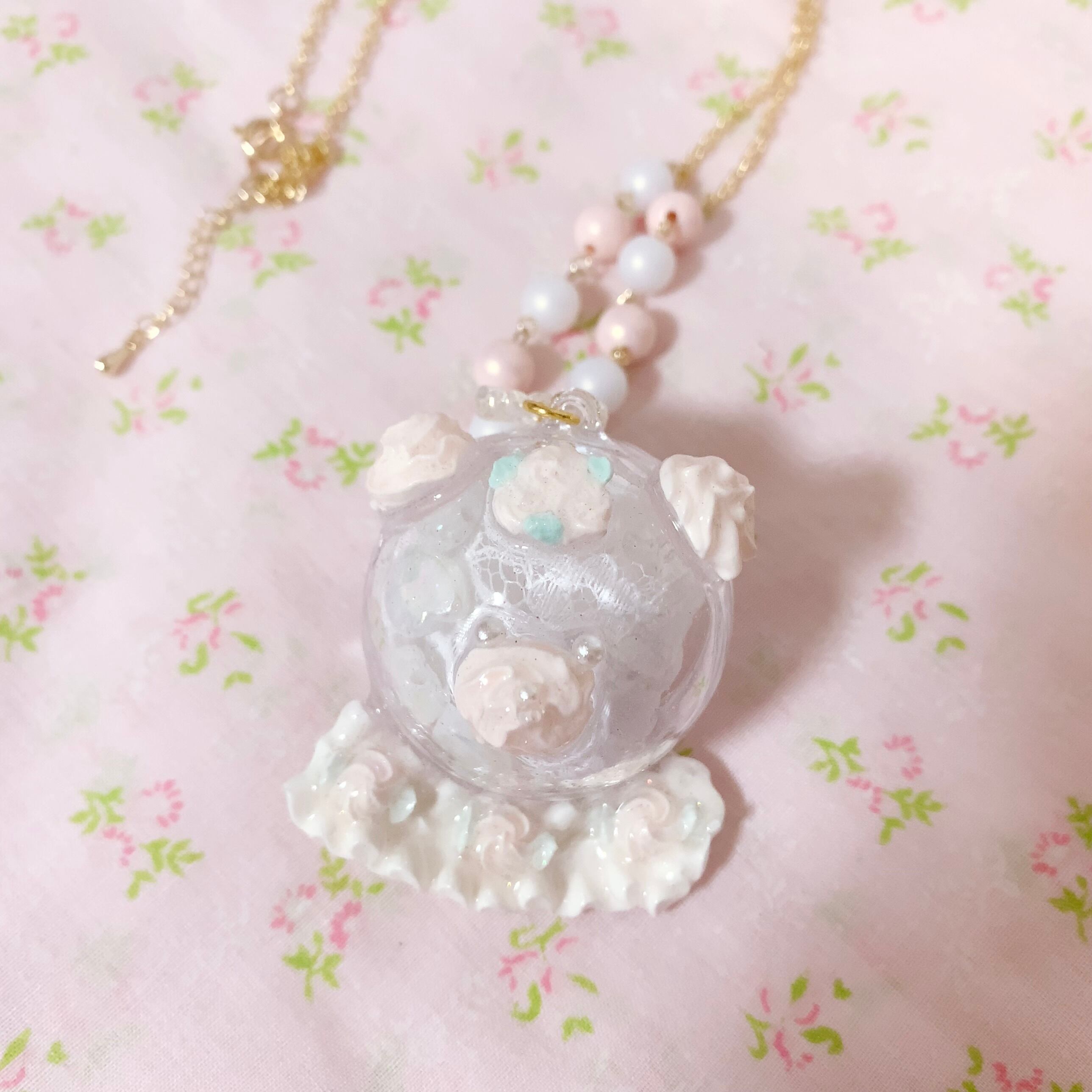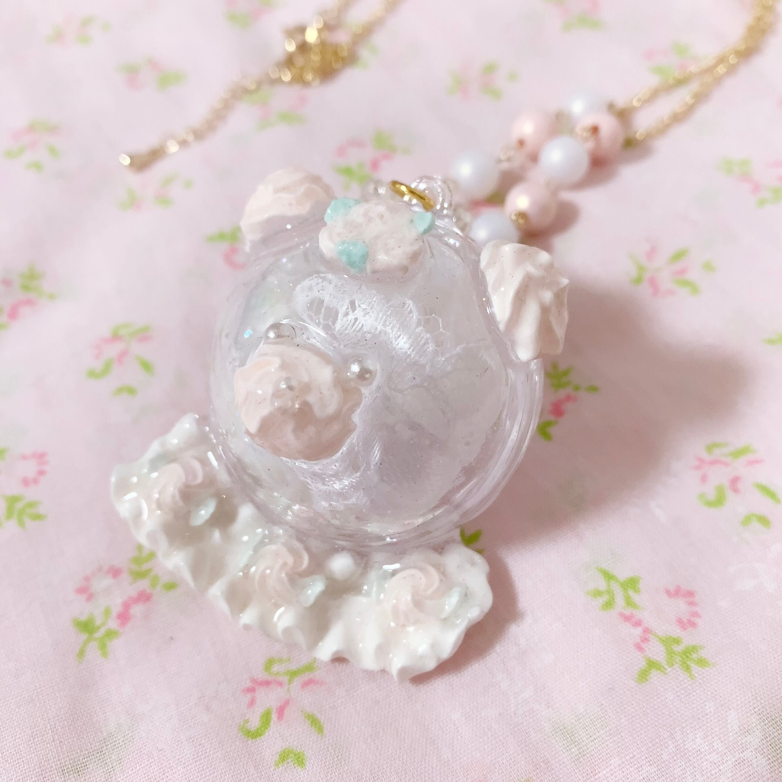 おしゃれしたくまちゃんの中にそれぞれビーズやレース、フリルなど閉じ込めました