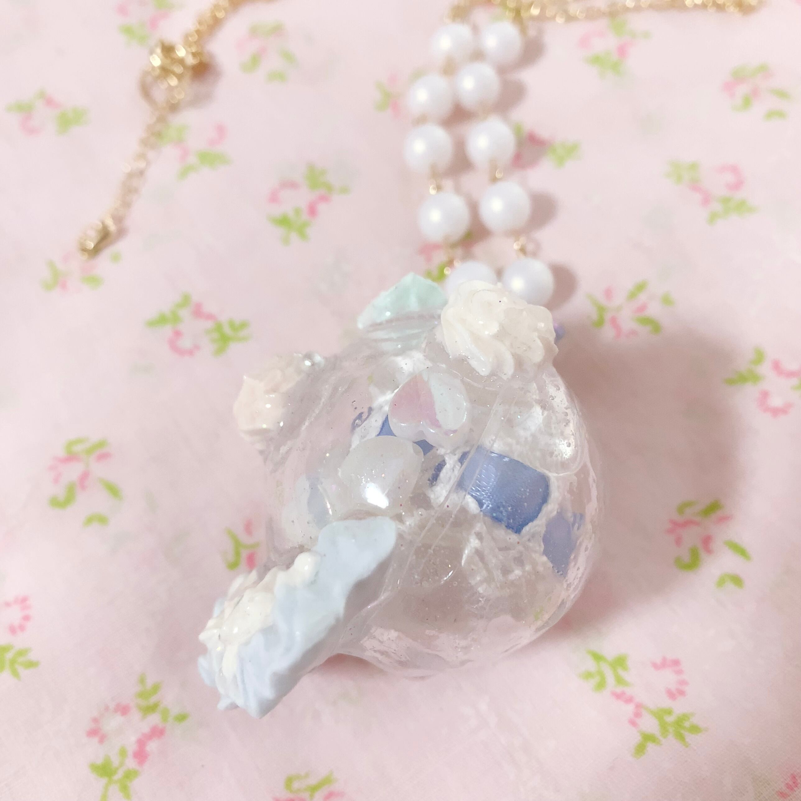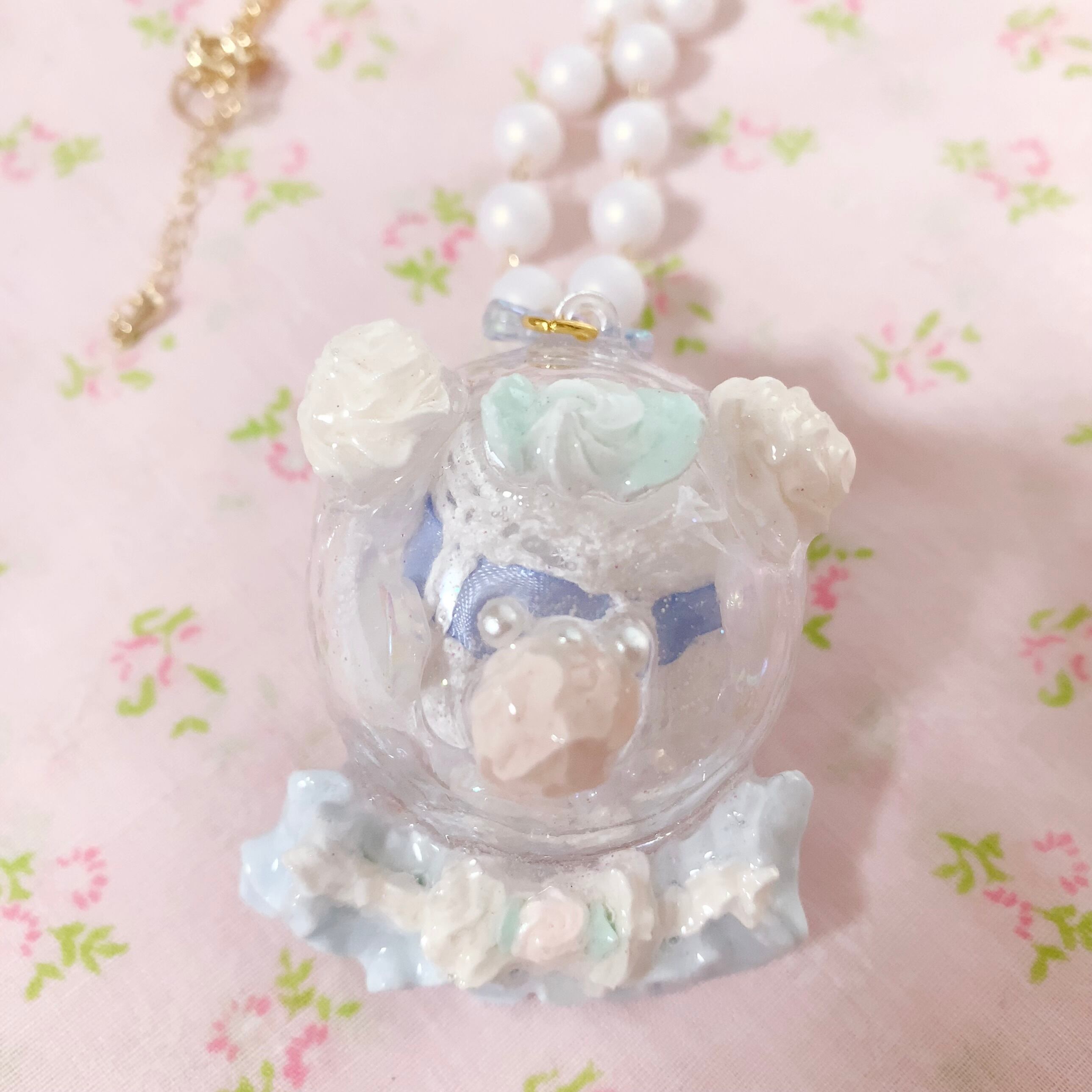おしゃれしたくまちゃんの中にそれぞれビーズやレース、フリルなど閉じ込めました